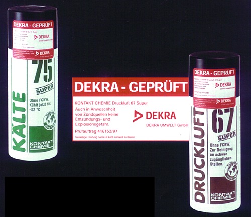 Unbrennbares, sauberes und ölfreies Druckgas, mit DEKRA- geprüfter Sicherheit. Keine Entzündungs- und Explosionsgefahr bei bestimmungsgemäßer Anwendung. Hinweis: für Anwendungen unter Spannung oder in EX-Schutzbereichen empfehlen wir DRUCKLUFT 67 SUPER. Als lageunabhängige Sprays empfehlen wir DRUCKLUFT 360 bzw. DRUCKLUFT 360 SUPER.